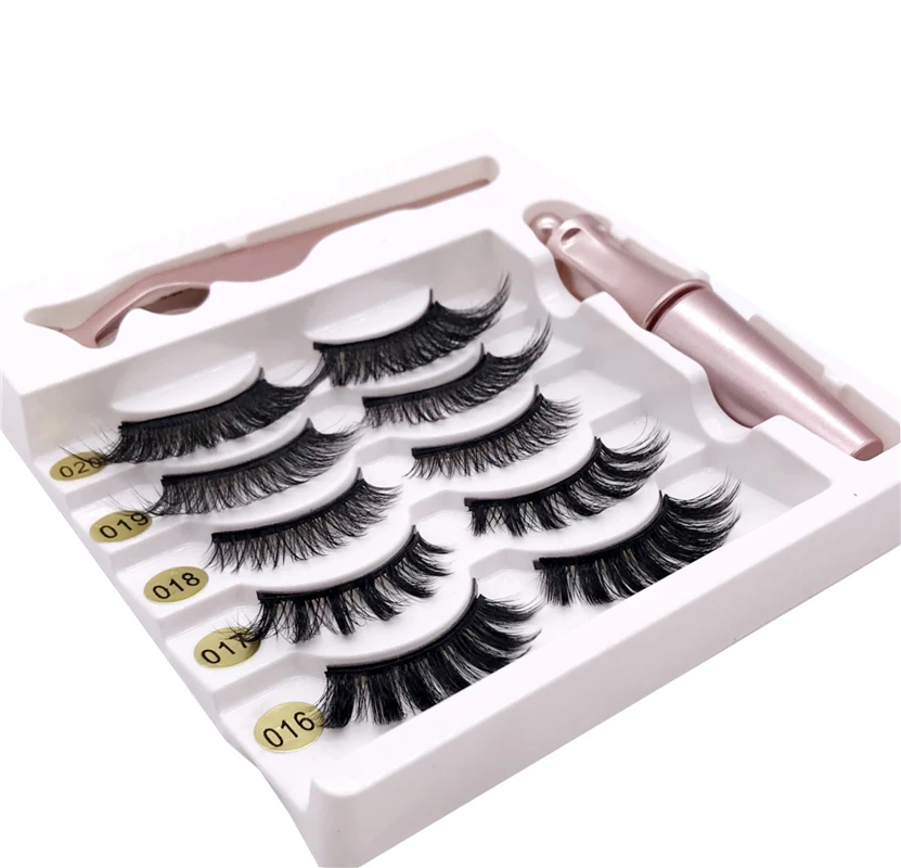 5 Pairs/Set Magnetic Eyelashes False Lashes Repeated Use Eyelashes Waterproof Liquid Eyeliner With Tweezer Makeup Set