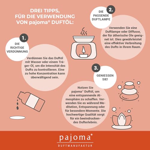 100% naturreines olio essenziale. Nel nostro assortimento si possono trovare un' ampia gamma di alimentatore oli profumati di Pajoma.