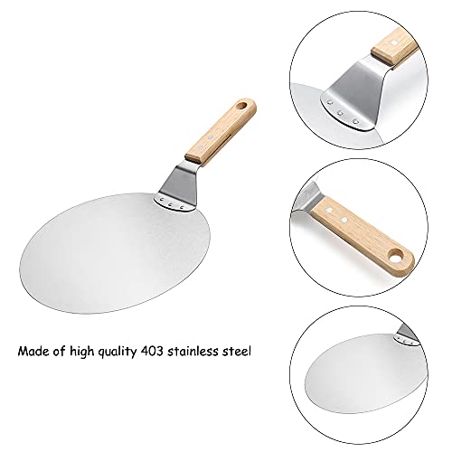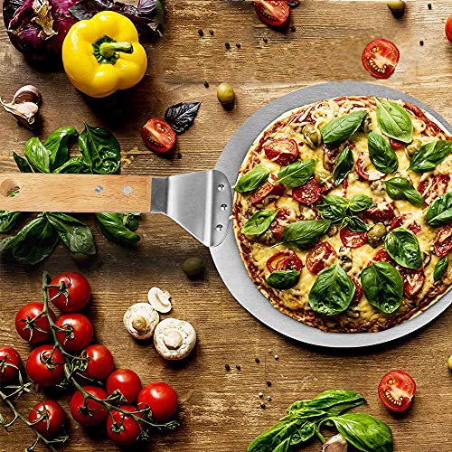 Pala per Pizza e Pane, Pala per Pizza in Acciaio Inossidabile con Manico, in 403 Acciaio Inossidabile, con Manico in Legno, per Pizza, Torte, Biscotti, Forno e Griglia, 25.5 cm / 10 pollici (Argento)