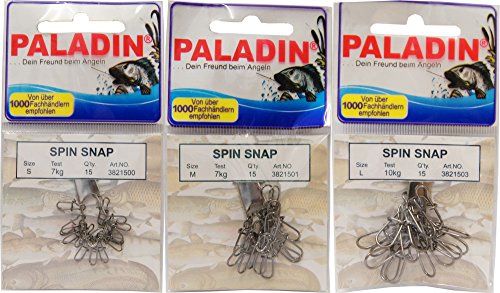 Paladin 15 esche artificiali Spin Snap Trick, gancio per esche da pesca, girelle, cambio rapido dell'esca, adatte per luccio, luccioperca, pesce persico e trota, pesca spinning, taglia: S