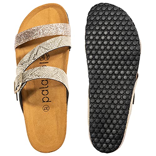 Palado Cios - Cios, pantofole da donna con cinturino regolabile, sandali con suola in pregiata pelle scamosciata, con plantare in sughero naturale, Pyth Gold, 42 EU