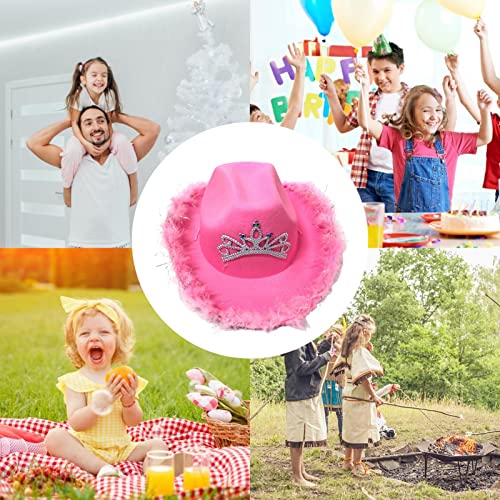 Palatable Cappello da Cowboy, Cappello da Cowboy Occidentale, Cappelli con diadema e Coulisse al Collo, Cappello da Travestimento Divertente per Feste Carine e festose, Accessori per Costumi Rosa