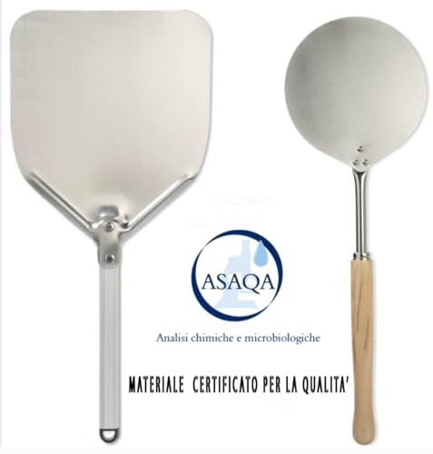 Pale Per Pizza non Forata- Kit Pala e Palino- Pala Corta Per Forno a Legna e Gas,Pala Professionale Alluminio- Ottima Per Crostate Pane e Focaccia - Made in Italy- Materiale Certificato Non Nocivo
