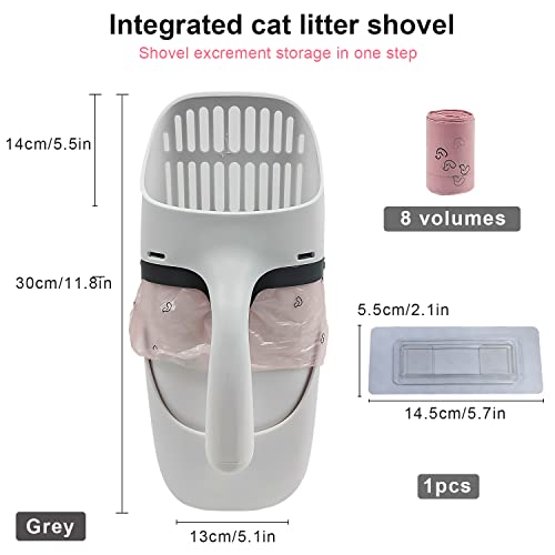 Paletta Lettiera Gatto con contenitore, Paletta per Lettiera per Gatti con Supporto, Paletta per Gatti con Sacchetti per Rifiuti per Lettiera, Paletta per Lettiera Portatile di Grande Capacità