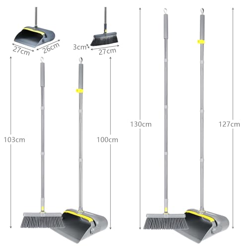 Manico regolabile in acciaio inox: la scopa è lunga 130 cm e la paletta è lunga 127 cm. È realizzato in acciaio inossidabile di alta qualità. Puoi regolare la lunghezza regolando il numero di maniglie in base alle tue esigenze. Può ridurre efficacemente la frequenza di chinarsi per pulire ed evitare mal di schiena.