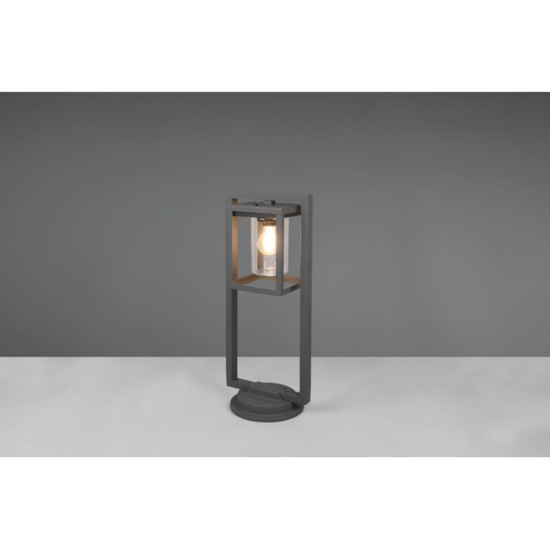 Il paletto LUNGA del brand Trio Lighting presenta una struttura in alluminio pressofuso squadrata a gabbia aperta di colore antracite e diffusore cilindrico in vetro trasparente. Sensore crepuscolare integrato che consente di avere un'accensione e uno spegnimento automatico della lampada. È possibile installare una lampadina con attacco E27 da max 40 watt, acquistabile separatamente. Certificazione di isolamento IP44 che preserva il dispositivo da eventuali schizzi d'acqua. Un'applique squadrata dal design compatto e moderno, perfetta per illuminare percorsi di camminamento ad esempio in un ingresso, una zona giardino o un vialetto. Disponibile anche il palo alto e le applique della stessa serie.