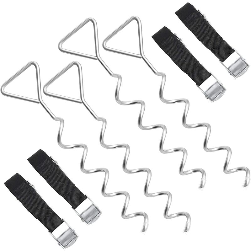 Il materiale più affidabile: i kit utilizzano batterie a spirale in acciaio zincato, una cinghia in fibra di poliestere ad alta intensità e un anello in acciaio resistente-plastica per fornire un'esperienza di uso sicuro. Regolabile: il nastro può essere facilmente regolato secondo necessità e l'intero articolo è collegato correttamente con un ciclo solido. Giacca a vento: anche quando i rami stanno ondeggiando nel vento, queste batterie in legno di trampolino, queste cinture e anelli possono permettersi da 5 a 6 gradi di vento e riparare la posizione appropriata. Utilizzato in pile di ancoraggio del trampolino, tende da campeggio a terra, oscillazione, seghe in barca e diapositive. Il design a spirale garantisce un'azienda. Lunghezza: 40-41 cm Set di 4 pile a spirale, 4 cinghie tese