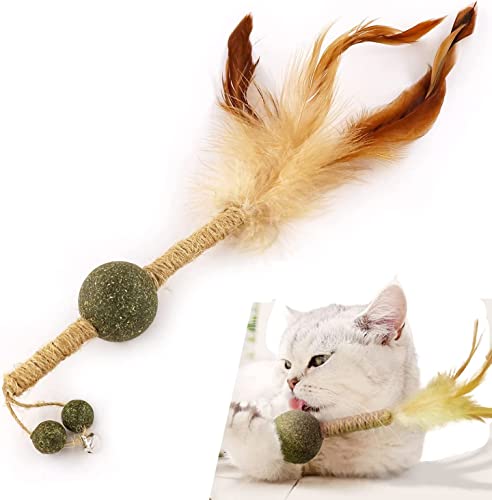 Palla Catnip Giocattolo per Gatti, Bastoncino per Gatti Silvervine, Giocattolo da Masticare per Gatti con Campana/Sisal/Piuma per Pulire i Denti del Gattino, Dolcetti per Gatti Matatabi (1 PC)