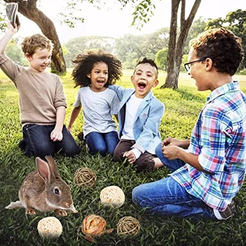 Palla Masticare Coniglio, 9 Pezzi Piccoli Animali da Masticare Giocattoli, Giocattolo da Masticare Rattan Palla, Palla dell'erba per Conigli, Masticare Rattan Palline per Cavia, Cincillà, Criceti