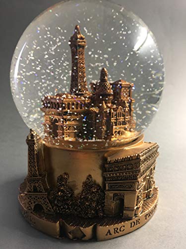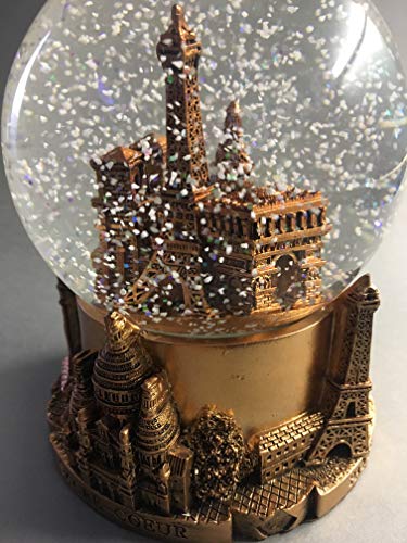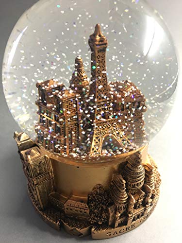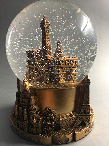 Palla di neve Torre Eiffel e Monumenti di Parigi - Colore rame brillante - Grande misura 14 cm - Base in resina di qualità e globo di vetro - Monumenti di Parigi incisi in 3D - Snow Scintillante