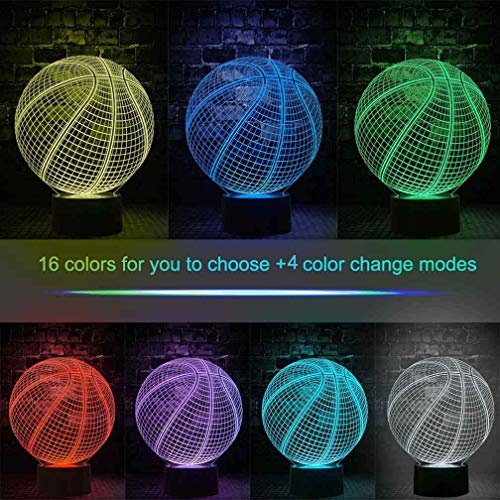 Pallacanestro squalo da regalo di Natale Lampada da illusione 3D Lampada da notte accanto alla lampada da tavolo, Jawell 16 colori Cambio automatico Touch Switch Lampade di compleanno con telecomando