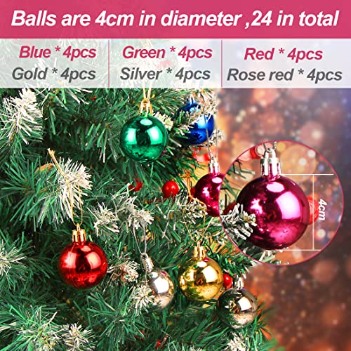Palle di Natale Colorato,24 Pezzi Palle Albero di Natale Fucsia 4 cm Palline Decorative,Ornamenti per Alberi di Natale Set,Viola Mini Decorazione Natalizia da Appendere a Sfera,Regalo di Natale