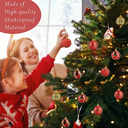 Palle di Natale Oro e Rosso 6 cm 30 Pezzi, Palline di Natale Personalizzate Grandi per Addobbi Natalizi per Albero, Set Palline Albero di Natale Particolari per Decorazioni Natalizie per la Casa