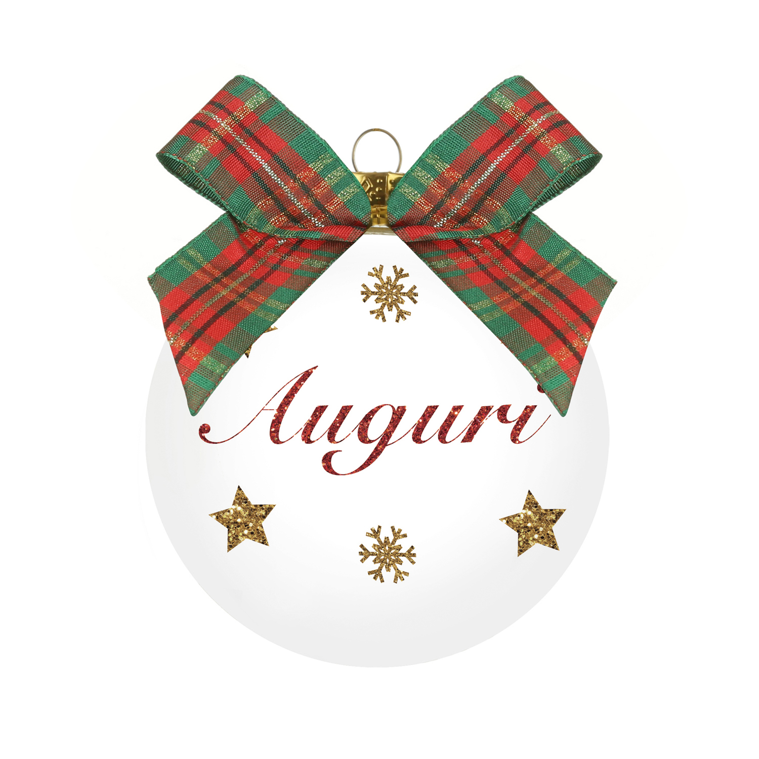 La collezione di palline Natale in vetro, con grafica creata dalla designer Benny Setti, è il perfetto regalo da fare ad amici e parenti. Completa di scritta "Auguri", è confezionata in una graziosa scatola regalo e presenta un bel fiocco tartan sui toni del rosso, scritta rossa e fiocchi dorati sul vetro. Potrai appenderla sui rami dell'abete tramite il pratico nastrino e posizionarla sulla tavola per arricchire il centrotavola durante le cene in famiglia. Diametro: 10 cm.