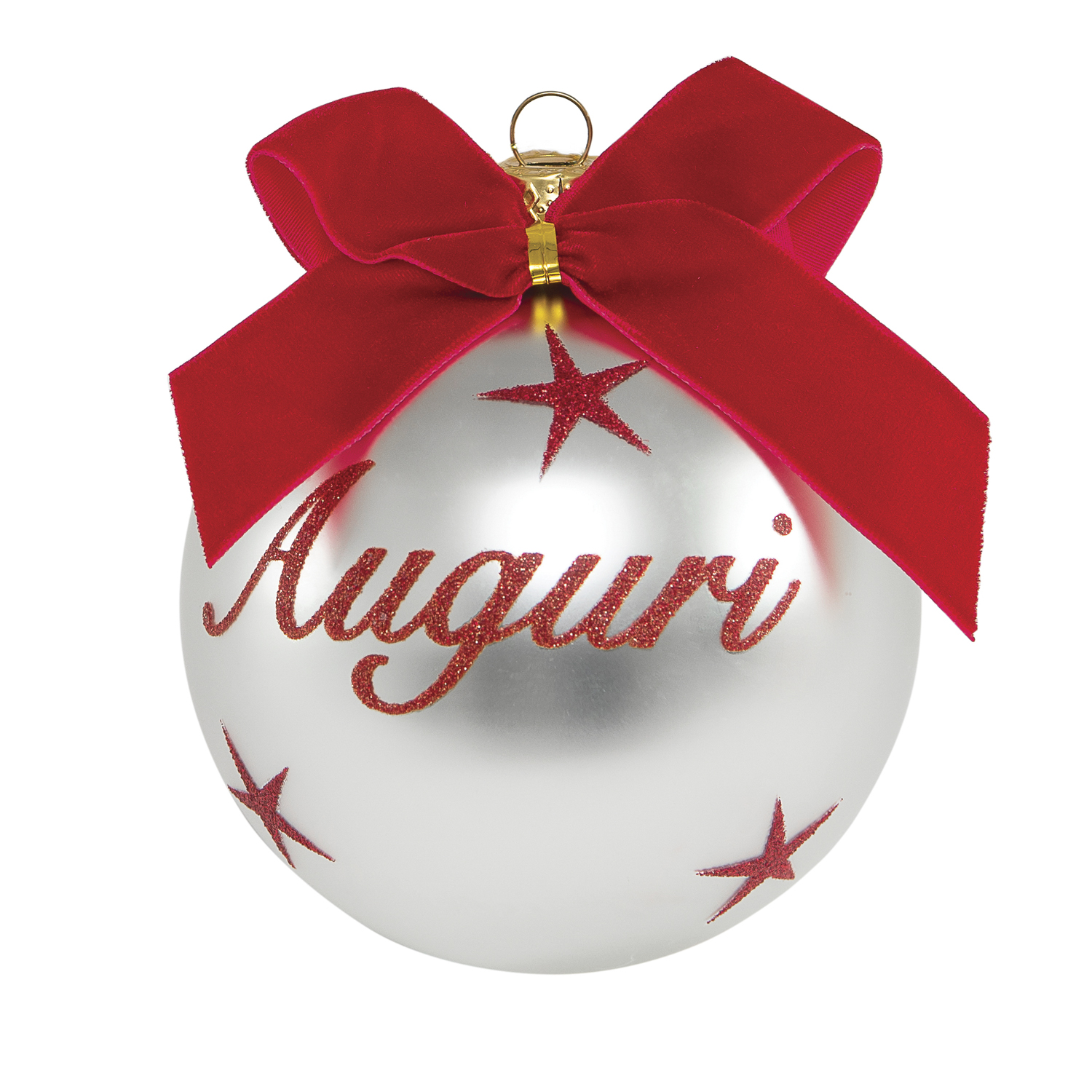 La collezione di palline Natale in vetro, con effetto argento perlato, è il perfetto regalo da fare ad amici e parenti. Realizzata da in collaborazione con la designer Benny Setti, è già confezionata in una graziosa scatola regalo e presenta un bel fiocco in velluto rosso e scritta Auguri glitterata. Potrai appenderla sui rami dell'abete tramite il pratico nastrino o posizionarla sulla tavola per arricchire il centrotavola. Diametro: 10 cm. Per la pulizia consigliamo di evitare sfregamenti con spugne o prodotti particolarmente aggressivi e di prediligere un panno morbido e delicato.