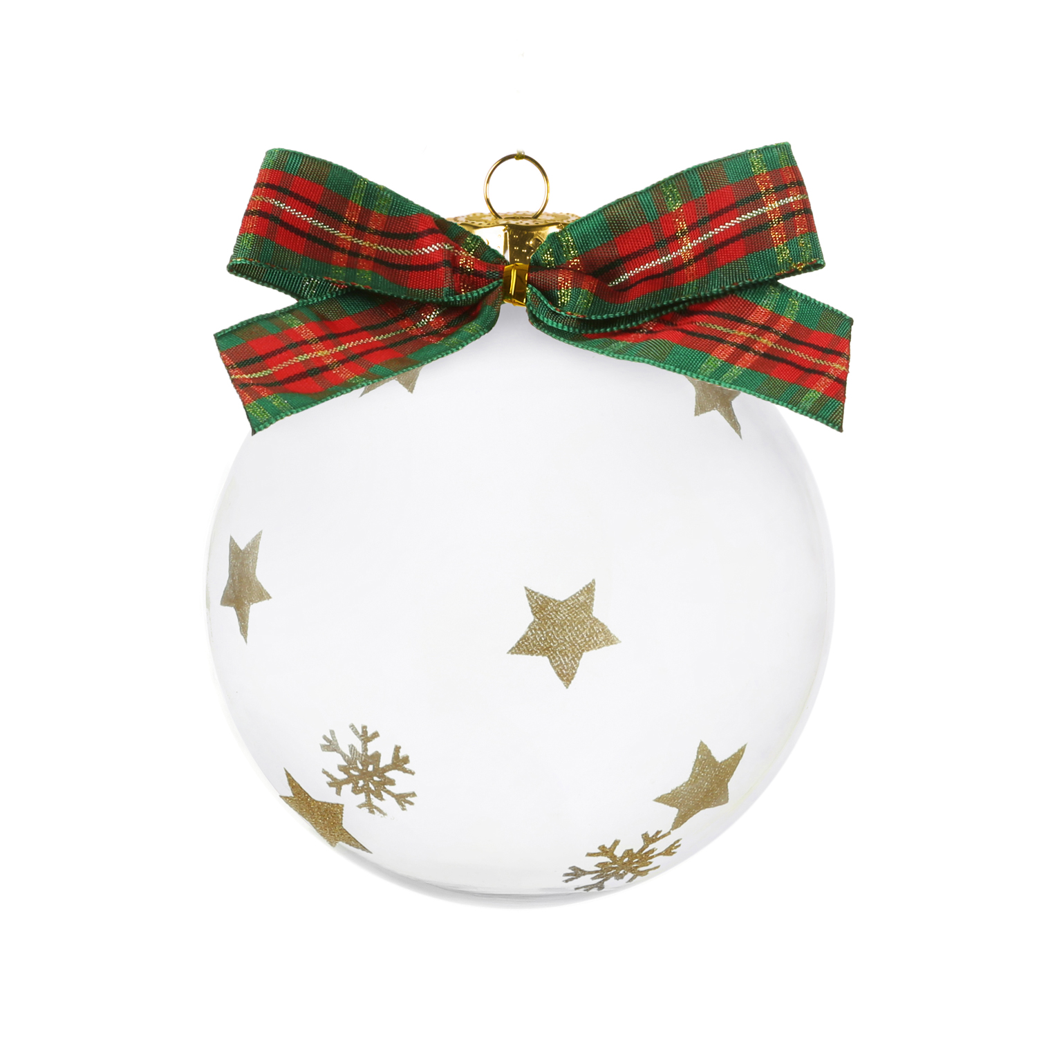 La collezione di palline Natale in vetro, con grafica creata dalla designer Benny Setti, è il perfetto regalo da fare ad amici e parenti. Confezionata in una graziosa scatola regalo, presenta un bel fiocco tartan sui toni del rosso e fiocchi dorati sul vetro. Potrai appenderla sui rami dell'abete tramite il pratico nastrino o posizionarla sulla tavola per arricchire il centrotavola durante le cene in famiglia. Diametro: 10 cm.