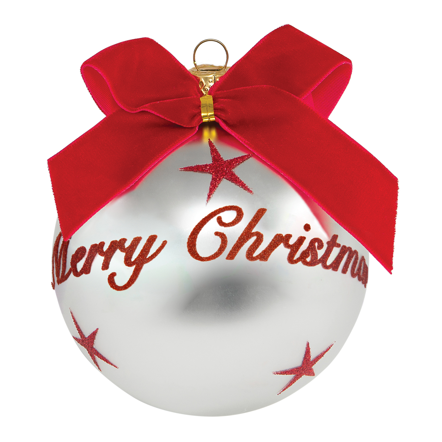 La collezione di palline Natale in vetro, con effetto argento perlato, è il perfetto regalo da fare ad amici e parenti. Realizzata da  in collaborazione con la designer Benny Setti, è già confezionata in una graziosa scatola regalo e presenta un bel fiocco in velluto rosso e scritta Merry Christmas glitterata. Potrai appenderla sui rami dell'abete tramite il pratico nastrino o posizionarla sulla tavola per arricchire il centrotavola. Diametro: 10 cm. Per la pulizia consigliamo di evitare sfregamenti con spugne o prodotti particolarmente aggressivi e di prediligere un panno morbido e delicato.