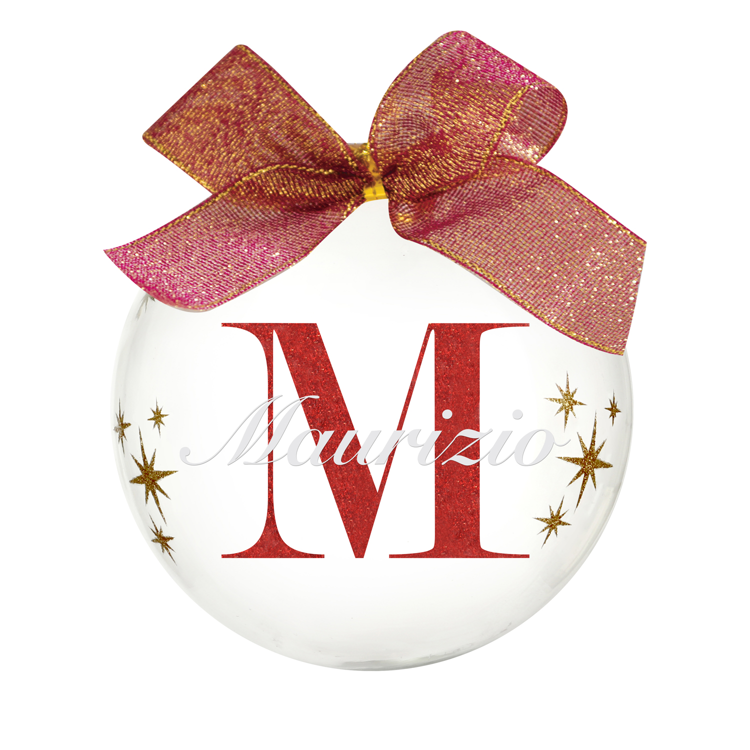 Rendi unico e speciale il tuo Natale con una decorazione natalizia col tuo nome! Questa palla di Natale in vetro è impreziosita da un decoro in rilievo con la tua iniziale e il tuo nome. Progettata e realizzata da Benny Setti in esclusiva per , è completata da preziose stelle dorate e un fiocco creato con un nastro rosso con glitter. Appendila all'albero insieme alle palline natalizie col nome della tua famiglia e dei tuoi amici! Puoi anche usarla come originale idea regalo: include, infatti, una raffinata confezione regalo chiusa con un nastro personalizzato col nome da te scelto. Diametro: 10cm.