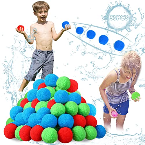 Palline di Acqua Riutilizzabili, Set di Palline per Acqua, per Battaglie Estive in Acqua, Nuoto, Spiaggia, Feste Giochi Acquatici Estivi, Palline da Combattimento per Bambini (50PCS)