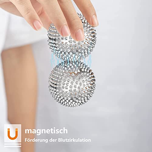 La confezione include: 2 palline magnetiche di Acupressure in diverse dimensioni, il diametro è di 47 mm o 32 mm. 5 anelli massaggianti in metallo, il diametro di ogni anello è di 25 mm;