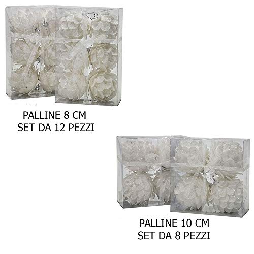 Palline bianche per Albero di Natale pigna sfera Decorazioni natalizie addobbi particolari allestimento Ornamento casa 10 cm set da 8 e 8 cm set da 12