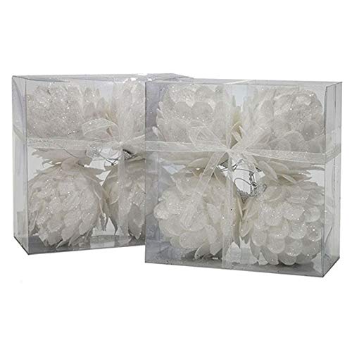 Se desiderate qualcosa di diverso dal solito, ma di esclusivo e particolare, questo splendido set da 12 palline di cm 8 o set da 8 palline di 10 cm bianco glitterato effetto pigna, belle e particolari che renderanno il vostro albero di natale bello e