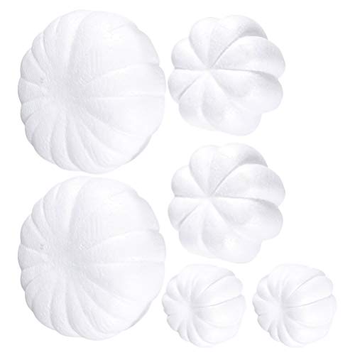 6 Palline in espanso per bricolage, Zucca, Colore Bianco, per Decorazioni Fai da Te, per Halloween, Feste, composizioni Floreali
