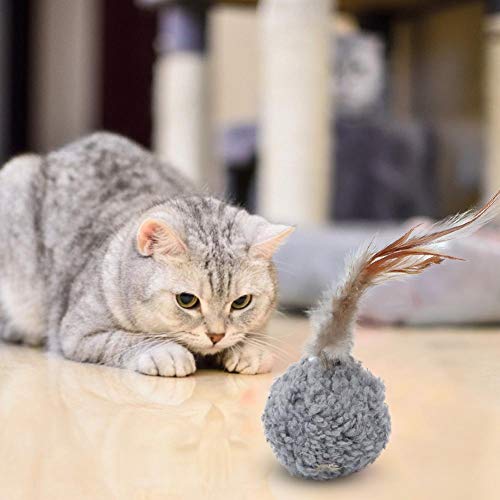 Feg - 12 palline per gatti in peluche, portatile, leggero, bianco, grigio, marrone, giocattolo per gatti