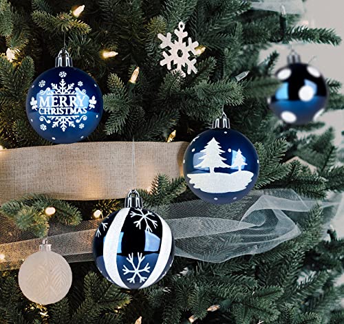 Palline di Natale, 30 pezzi, 6 cm, in plastica, decorazioni natalizie con decorazione per albero di Natale, tema tradizionale, blu scuro e bianco, per albero di Natale