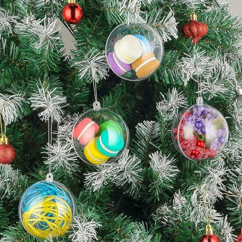 Palline - Queste palline di plastica trasparente da 5 cm sono meravigliose per il periodo natalizio. Riempire con orpelli, piume, palline più piccole, foto, fiori o caramelle. Rendi queste palline davvero festose e appendile al tuo albero di Natale. Personalizzali e inviali come regalo premuroso a familiari e amici.