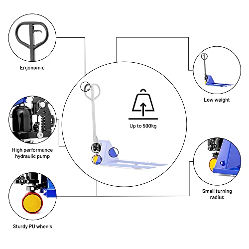 ✅ FORTE CAPACITÀ DI CARICO - Il transpallet può facilmente sollevare e abbassare carichi pesanti fino a 500 kg / 0,5t ed è quindi perfettamente adatto per luso quotidiano