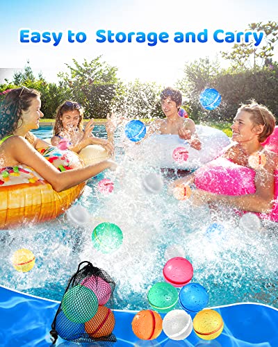 Palloncini d'acqua Riutilizzabili, Autosigillanti e Riempimento rapido gavettoni con borsa a rete, Giocattoli da piscina per bambini Adulti famiglia Giochi estivi da giardino (8 pezzi)