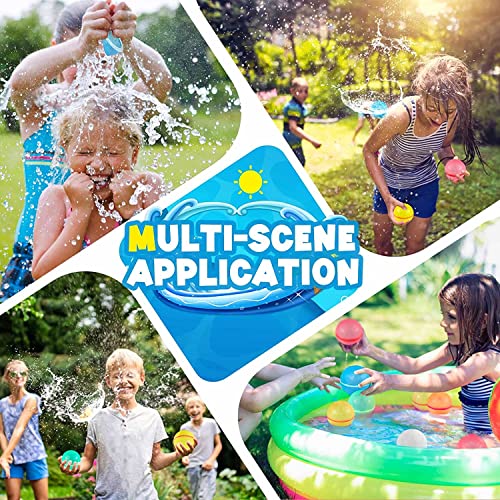Divertenti giocattoli per feste estivi: inizia il divertimento estivo giocando con palline d'acqua. I palloncini d'acqua a riempimento rapido estivi sono ideali per giocattoli da piscina, giochi da spiaggia, forniture e accessori da spiaggia, giocattoli da spiaggia, giocattoli estivi per giochi e attività all'aperto, giochi di combattimento di pallanuoto su prati, piscine, spiagge e cortili. Adatto per molte occasioni.