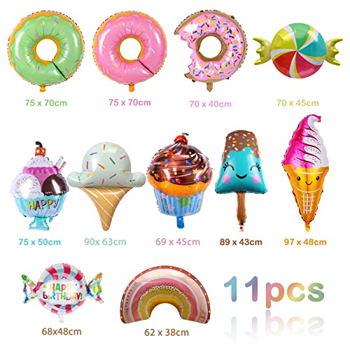 11 Palloncini in Alluminio con Ciambella Gelato, Decorazioni per Feste di Compleanno di Caramelle,Palloncini per feste estive per decorazioni estive per feste di compleanno