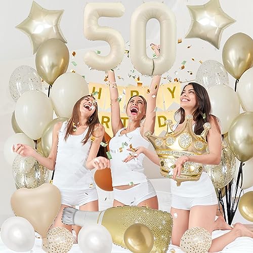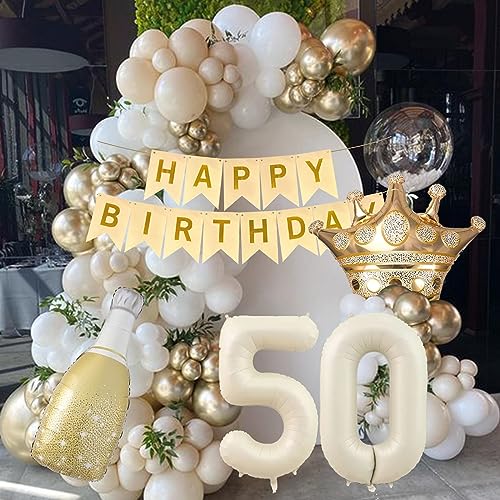 【Decorazioni 50 anni Compleanno】-- Palloncini 50. Compleanno Oro Bianco, palloncini beige 50 deko compleanno, formano una stabile e unica 50. Decorazione di compleanno. Decorazione di compleanno donne, Niente dice glamour come una festa a tema oro beige.