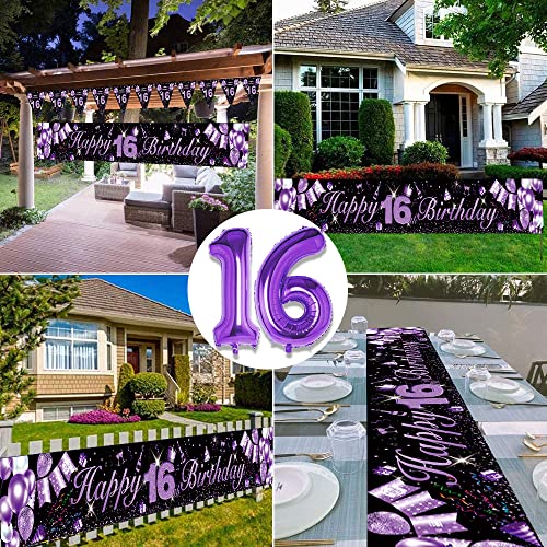 Palloncini 16 Anni Compleanno, DJLLA Viola Nero Decorazioni 16 Anni Compleanno Striscione Sfondo Addobbi, Viola Nero Palloncini Compleanno 16 Anni per Ragazza Festa Kit