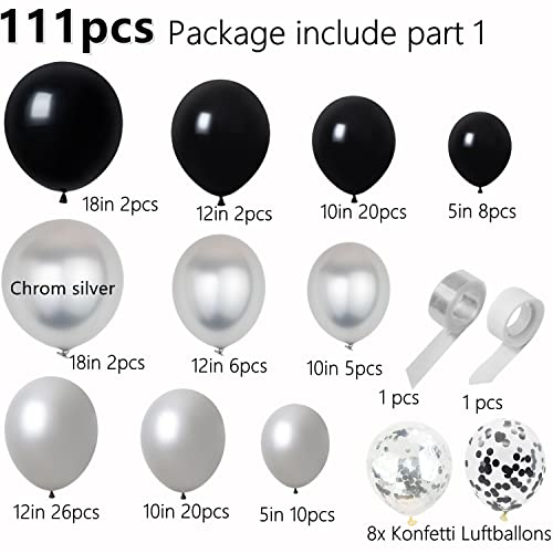 ♕ Decorazioni per feste eleganti: puoi creare il tuo stile di festa e decidere come mostrare le decorazioni della festa. Happy birthday deco nero argento legare strumento, catena di palloncini e colla punto sono inclusi per aiutarvi a fare ghirlanda di palloncini o arco di palloncini. Anche i meno esperti possono realizzarla completamente da soli. Scoprite il piacere di decorare la vostra festa e rendete speciale questo giorno.