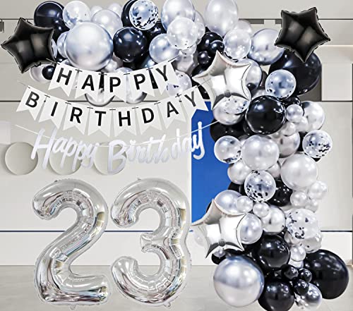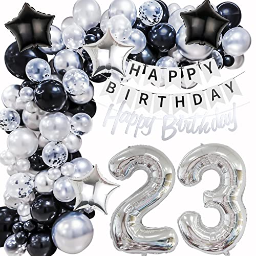 Palloncini 23 Anni Compleanno Uomo, 23 Anni Compleanno Decorazione Argento Neri, 23 Anni Palloncini Garland, Decorazione 23 Compleanno Uomo Donna, 23 Anni Palloncini Compleanno Argento Neri