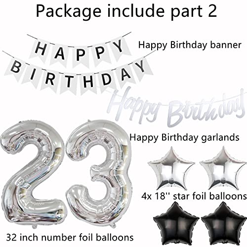 ♕ Decorazione 23 compleanno nero argento: decorazione 23 compleanno unica e brillante in nero e argento. Nuovo migliorato super ricco deco compleanno che sono sufficienti per decorare il vostro 23 compleanno. Un grande regalo per decorare la tua festa di compleanno, creare un mondo incredibile e lasciargli ricordi indimenticabili.