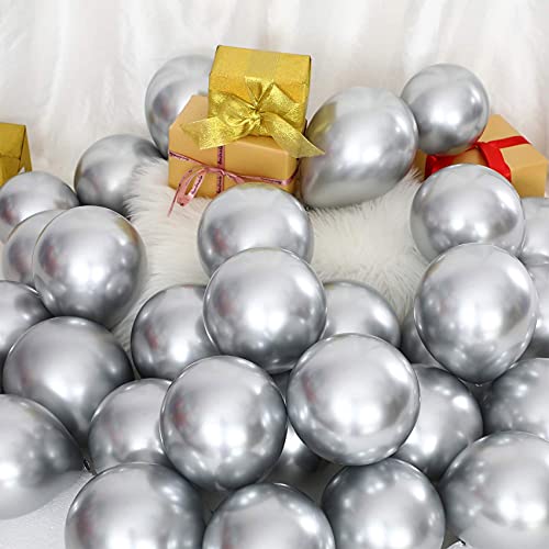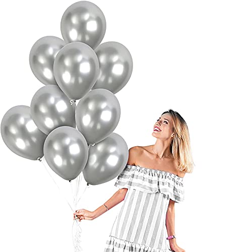 Palloncini Argento 100PZ 10 Pollici Palloncini Argento Metallizzato Palloncini Argento in Lattice per Compleanno Fidanzamento Matrimonio Feste Palloncino EXGOX