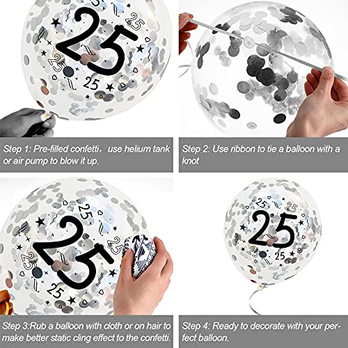 Set di palloncini per anniversario di matrimonio d'argento, 1x banner, 50 x coriandoli argento, 30 x palloncini in lattice (10 x argento, 10 x palloncini stampati argento, 10 x palloncini confetti stampati argento), 1 x 25 palloncini foil digitali, 2 x palloncini foil love, 2 nastri per palloncini, 1 cannuccia