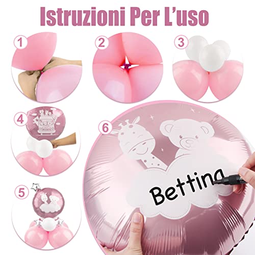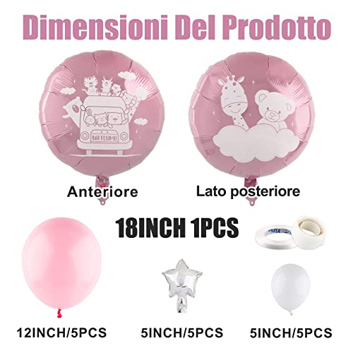 【Dimensione:】I palloncini rosa in lattice sono di circa 12 pollici. I palloncini bianchi in lattice ed i palloncini di stella sono di circa 5 pollici. I palloncini rosa di pellicola di alluminio è di circa 18 pollici.
