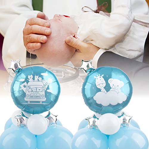【Il pacchetto include:】16 pz di palloncini battesimo (5 pz di palloncini blu in lattice, 5 pz di palloncini bianchi in lattice, 1 pz di palloncino in pellicola di alluminio e 5 pz di palloncini argentati a forma di stella. )