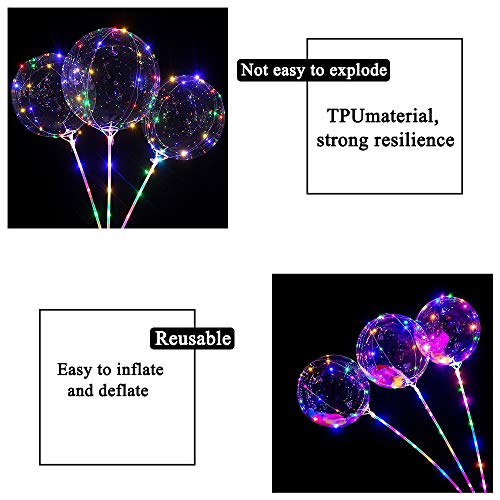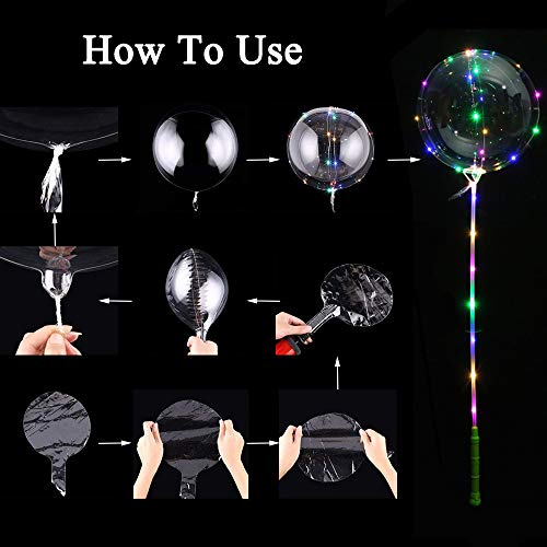 Facile da usare: è sufficiente gonfiare il palloncino luminoso a LED (51 cm) con aria o elio, quindi assemblare il palloncino e l'asta e installare 3 batterie AA (le batterie non sono incluse). Portare colori vivaci a qualsiasi occasione divertente per un'intera serata.