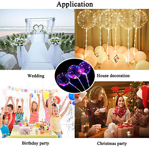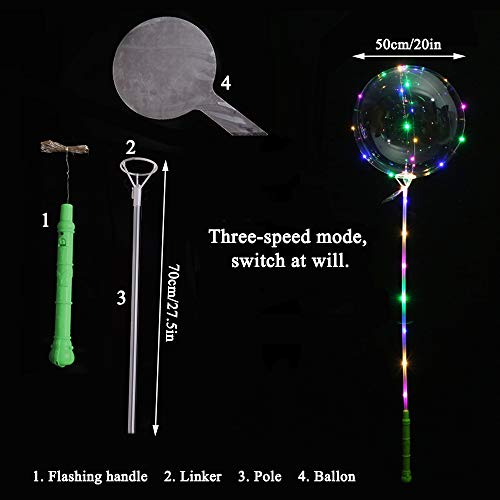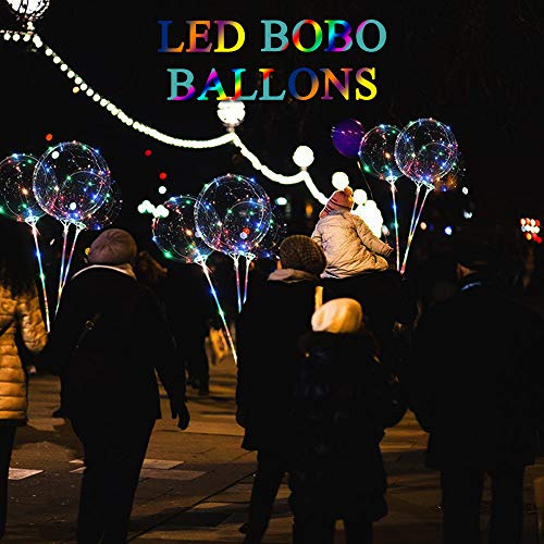 Combinazione perfetta: 10 palloncini BOBO luminosi colorati, le luci in ogni palloncino possono durare 72 ore. Ogni palloncino ha una stringa di luce LED di 3 metri.La scatola di luci è dotata di interruttore e puoi spegnere e accendere la luce in qualsiasi momento. Ogni palo misura 70 cm.