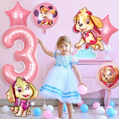 Palloncini Compleanno 3 Anni, Paw Dog Compleanno, Addobbi Compleanno Bambina 3 Anni, Decorazioni per Feste Rosa con Palloncini Sky, Numero 3 Palloncini