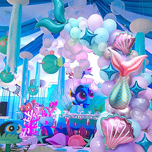 Stai organizzando una festa di compleanno da sirenetta? Abbiamo le decorazioni di compleanno a sirena più carine per ragazze! Decorare con i nostri palloncini per feste a sirena è facile. Il set include palloncini colorati per il kit ghirlanda di palloncini a forma di sirena con pezzi di coda in mylar blu, uno striscione decorativo "Happy Brithday" e accessori aggiuntivi. Queste forniture per feste sotto il mare daranno vita alla tua festa a tema sirena!