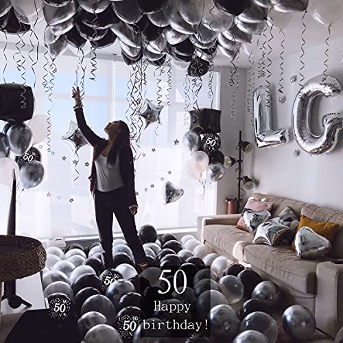 Palloncini Compleanno 50 Anno, 50 Palloncini Argento Nero, 50 Decorazioni di Compleanno Uomo, 50 Decorazioni di Compleanno Donna Signora, Bandiera di Compleanno, Palloncino Stellare