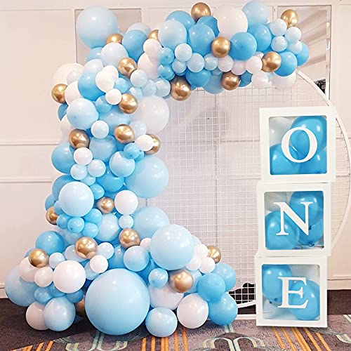 Palloncini Compleanno 1 Anno Bimbo, Con 24 Palloncini Blu Bianco, 3 pezzi Scatole Trasparenti Con Lettere ONE, Primo Compleanno Bambino, Decorazioni Compleanno 1 Anno
