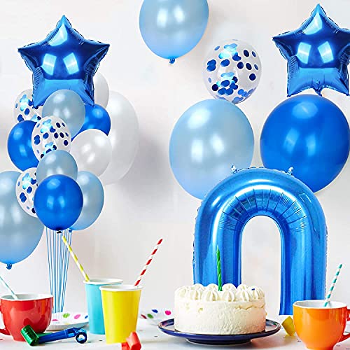 Decorazione squisita per il compleanno:1 palloncino lamina numero 40 pollici(101 cm), 24 palloncini in lattice (6 palloncini in lattice blu, 6 palloncini azzurri, 6 palloncini in lattice bianco, 6 palloncini coriandoli), 2 palloncini a stella, 2 nastri blu,1 striscione buon compleanno.